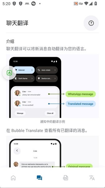 独创的悬浮气泡,无需切换应用即可在任何界面上即时翻译文本。