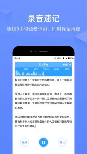 2、语音输入时间不限,说多久识别多久,分分钟变身速记员。
