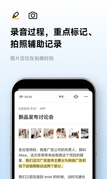 2、录音过程,重点标记、拍照辅助记录