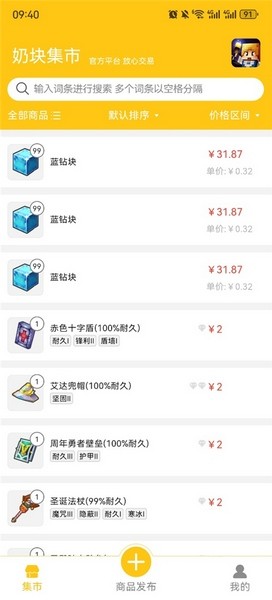 奶块集市是一个专为游戏《奶块》和《龙与家园》设计的虚拟物品交易平台。玩家可以把游戏里的道具、装备等物品挂到集市上卖钱,挺方便的。软件支持各种商品交易,还允许用户绑定支付宝,没有交易额度限制,挺灵活的。