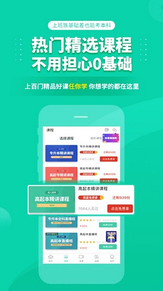 这个成人高考成考APP看起来挺不错的,里面功能齐全,特别是提供的免费学习资源让我眼前一亮。首先,它有直播课程,用户可以随时观看,这对于那些时间紧张的人来说特别方便。而且还有大量的真题和试卷,通过刷题来提升成绩,这种方法我觉得挺有效的。