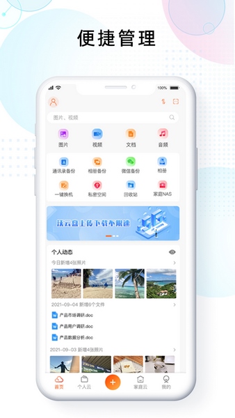 智家云盘app官方版是一款主打网盘存储服务的软件,帮助用户更好的储存重要的文件。若是手机内存不足,导致内容无法存储的话,那么不如使用这款软件进行存储吧!软件内功能相当强大,操作简单便捷,一键极速上传各种文件,例如文档、照片、视频等,满足用户的存储需求!同时用户也能选择将手机数据备份至软件,轻松管理更便捷!
