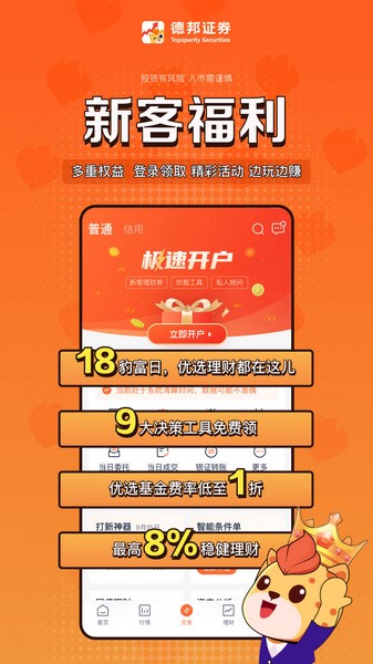 德邦证券app最新版是一款专用于证券理财投资的软件。这款软件能够为用户传递最新罪事实的证券市场信息,用户可以在线查询证券市场变动资讯以及每一支证券理财产品的变化及趋势,测算风险并做出应对。除了能够查询理财产品信息外,用户也可以借助这款软件来购入和出售手中的理财产品,让交易更方便。
