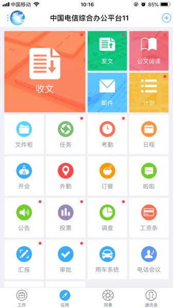 综合办公app是一款由中国电信为旗下员工打造的移动办公平台,囊括了办公、通讯、社交等超多功能,绝对可以带给大家更加轻松、便捷的办公体验。此外,软件也能够在一定程度上帮助提升工作的效率,在降低沟通与管理成本的同时为大家带来全新的智能移动办公体验。并且,针对不同岗位用户们的个性化需求,综合办公app也能够非常好的进行满足。