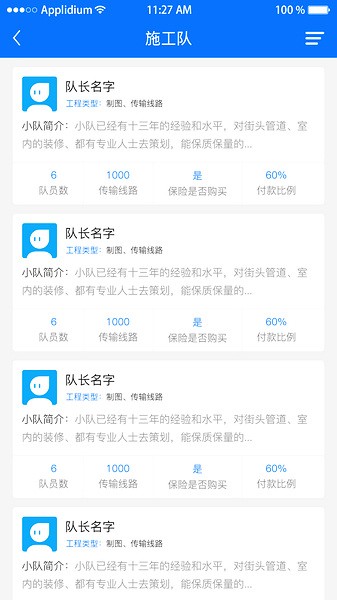 1、查询优秀施工队,有着详细的施工队简介,方便寻找优秀施工队;