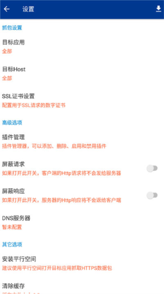 5、支持对抓包数据进行筛选、搜索,以及设置抓取指定应用和指定Host/IP。