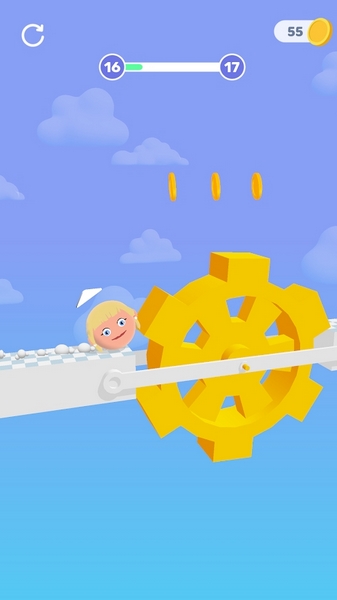 2、避开障碍物,利用轨道上的金币、加速带等,提升角色移动速度与收集效率,推进关卡。