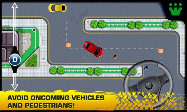 这款游戏的最大特色是它的操作方式和画面设计。它提供了三种控制方案:倾斜装置、屏幕方向盘和滑杆,玩家可以根据自己的喜好选择最适合的方式。虽然画风采用了上帝视角,显得有些简单,但游戏中的特效非常逼真,比如车辆启动声、撞车震动以及停车时的惯性感,这些都让游戏更具可玩性。