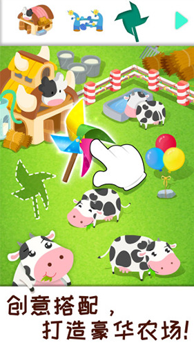 奇妙农场是一款早教育儿益智类手游,游戏画风Q萌可爱,模拟了现实中的农场工作,浇水施肥种植农作物,各种创意搭配打造豪华农场,了解蜂蜜产出过程等,让宝宝们亲近大自然,了解动物的习性,帮助宝宝们开拓视野,在游玩的过程中提高动手能力。