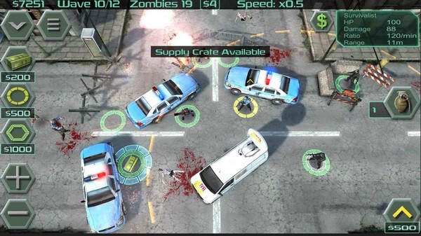 招募士兵,把他们放在防御点,让他们通过自己射击阻止数波僵尸。