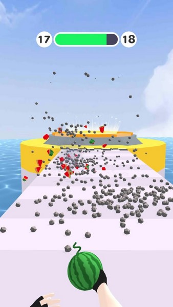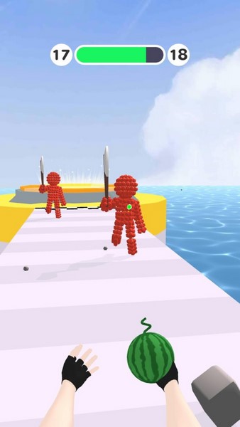 游戏中有很多有趣的武器可以解锁,比如西瓜这种奇葩道具,用来砸人也是别有一番风味。关卡设计丰富,场景多样,战斗过程很刺激。不同武器带来的特效也各有特色,操作感满满。