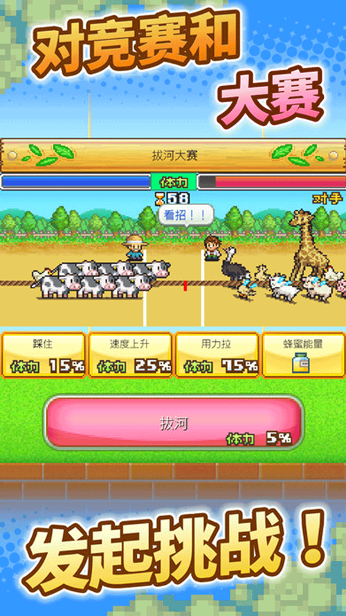 在大赛上,可以使用动物、花卉和农作物,挑战“拔河”、“滚球”、“消除”等小游戏。