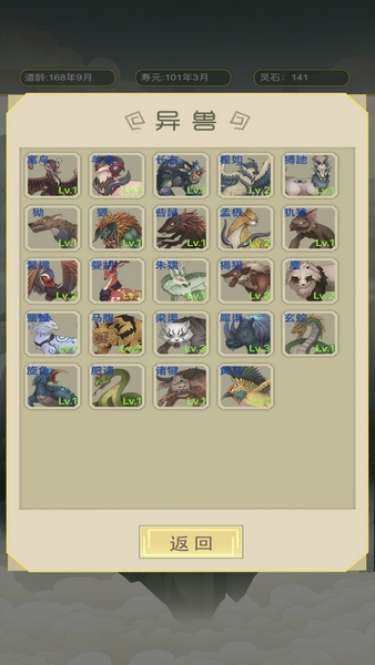 异兽:75个精美异兽供你收集、培养。