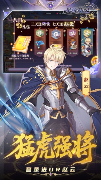 3、7天登录领取极品UR张飞,UR赵云,UR神器,豪礼福利送不停!!