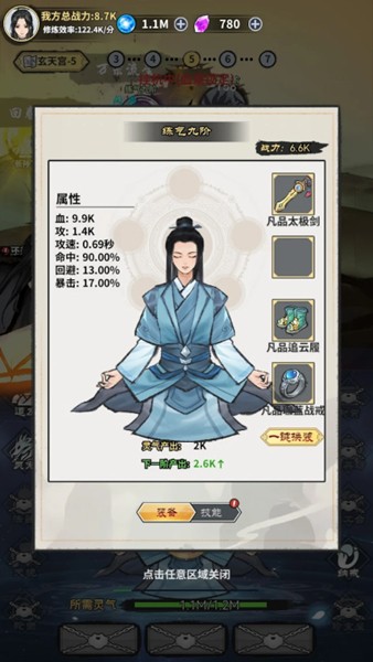 1、挂机修炼 —— 离线也能获得灵气,轻松养成无需肝。