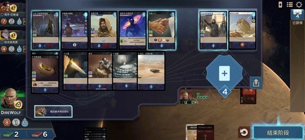 1、回合开始:玩家从自己的牌库中抽取5张牌,代表自己控制的特使或预备力量。