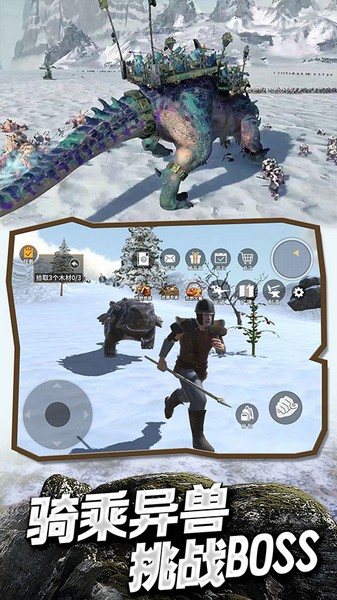 3、骑着你的珍奇异兽进行冒险之旅,在冰原中有着各种庞大的怪物们,和你的野兽一起战斗,挑战更强大的敌人。