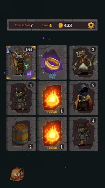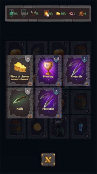 2、击败老板并增加游戏难度并升级英雄。 获得一个宝箱作为奖励。 小心:在有用的卡片中,一张可能会遇到危险的卡片,例如毒药。