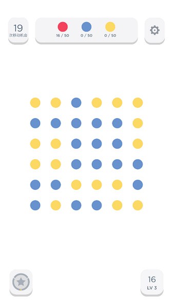 3、左上角显示的是本局游戏可移动次数,在中间收集带颜色的圆球,满足条件即可过关