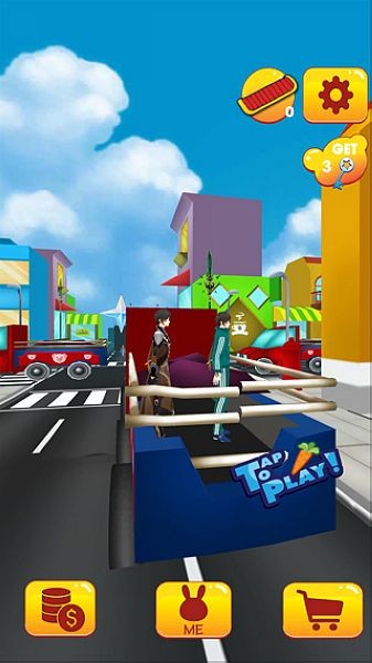 1、沿着轨道前进,积累资金,跑酷时收集道具,对你有很大帮助;