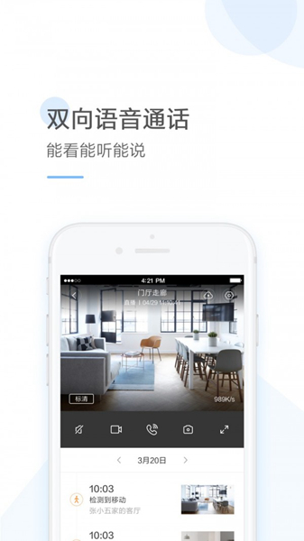 【双向语音通话】身处再远,也能随时语音互动,家人、宠物仿佛就在身边;