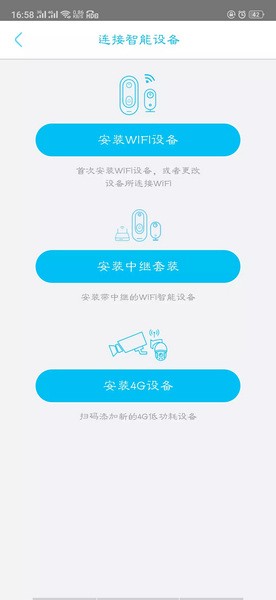 3、点击主页添加设备,选择安装的智能设备类型;