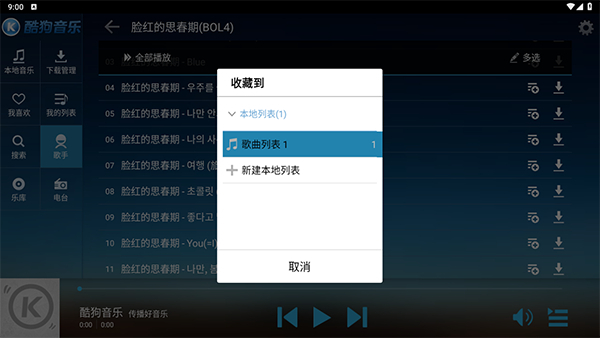 3、为自己的列表取名,否则系统自动默认歌曲列表1