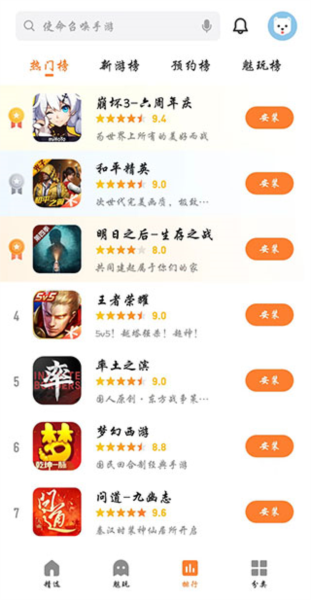 1、魅族官方的游戏中心,和大多数游戏中心一样,各种类型的游戏都有,海量资源供你选择。