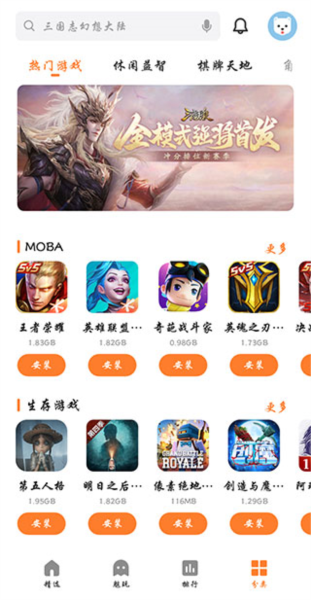 2、同时还有各种精选、排行、推荐、专题为纠结的你更快的找到感兴趣的游戏。