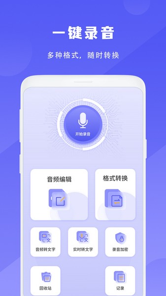 简洁录音机手机版是一款功能多样的便捷手机录音软件。这款软件能够为用户提供优秀的手机录音功能,能够保存不同格式的音频文件,并且用户在完成录音之后可以直接对音频文件进行简单的处理加工,例如对音频内容进行提取和片段剪辑等。此外,在用户录音的时候可以开始语音转文字功能,一边录一边看转化的文字,可以直接将转化的文字文本导出保存。