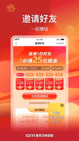 邀请新朋友下载爱奇艺极速版,有机会兑换年卡权益,不付费也可华丽变身会员