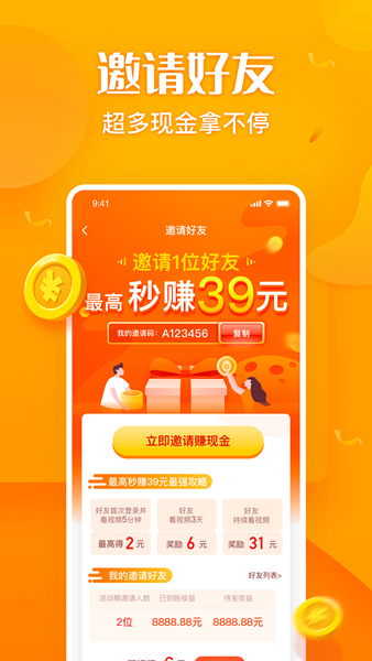 邀请好友一起看视频赚钱,还能获得额外现金红包