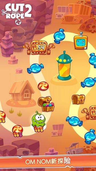 《割绳子2破解版》是一款超有趣的安卓益智解谜手游,游戏延续了经典的玩法,新增了许多有意思的关卡。玩家需要通过割断绳子帮助小怪兽吃到糖果,同时解锁更多成就和三星通关。游戏中有各种各样的关卡设计,比如糖果森林、沙漠大坝等,满足不同玩家的需求。