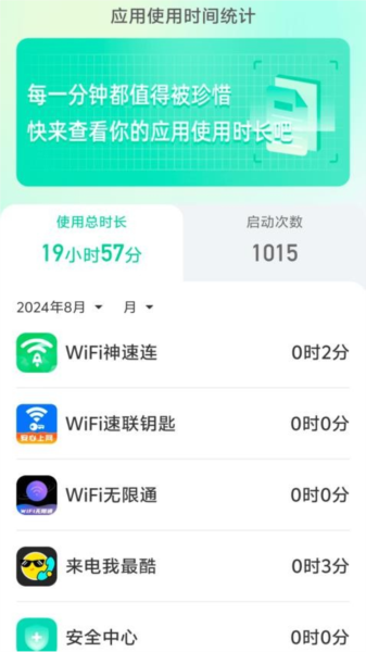 将手机上每个应用的使用时间精准统计,可查看了解手机应用的使用时长。