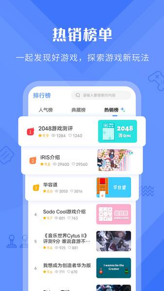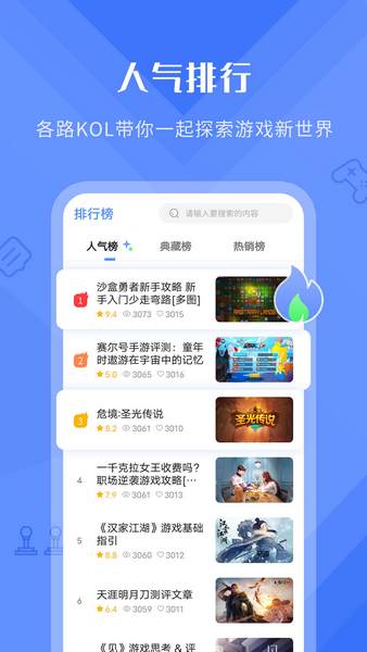 2、人气排行:各路KOL带你一起探索游戏新世界;