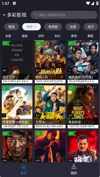2、进入到首页之后顶部栏中汇集了很多的影视剧集,电视剧、电影以及综艺等类型都有。