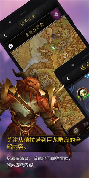 在“巨龙时代”、“暗影国度”、“争霸艾泽拉斯”、“军团再临”和“德拉诺之王”中管理你的大军,包括任务和追随者、科技树,以及更多内容!
