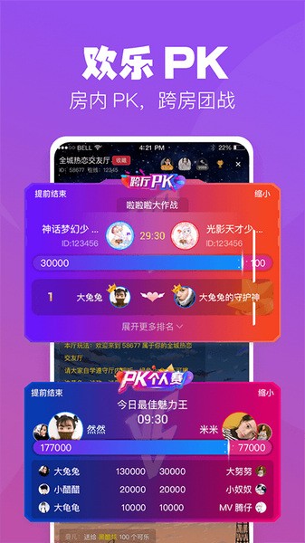 多人在线连麦,吹吹牛、玩猜拳、玩相亲,随便玩。