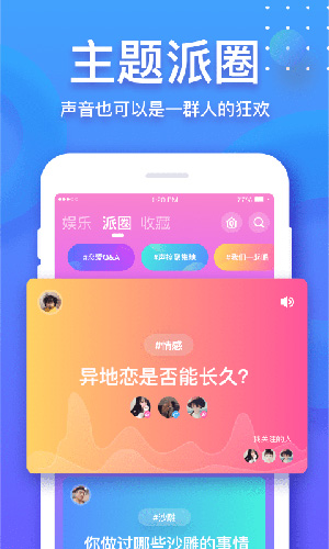 音派是一款由广州沙巴克网络科技有限公司开发的语音社交APP。在这里,用声音,用言语就可以打动另一个TA!明明素未谋面,却道好久不见,你说的话,TA总能接上,三观相合,大概就是这样。你在这里也会遇到一个你喜欢的ta,无论是一起玩游戏,还是处个对象。声音在这里就是你的明信片!快来用你的声音打ta吧!