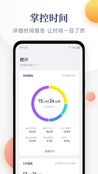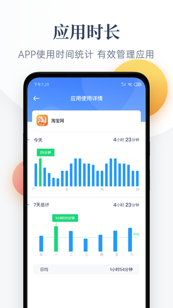 记录手机每日或近7日使用时间和平均使用时长,,轻松了解每天玩手机时间。