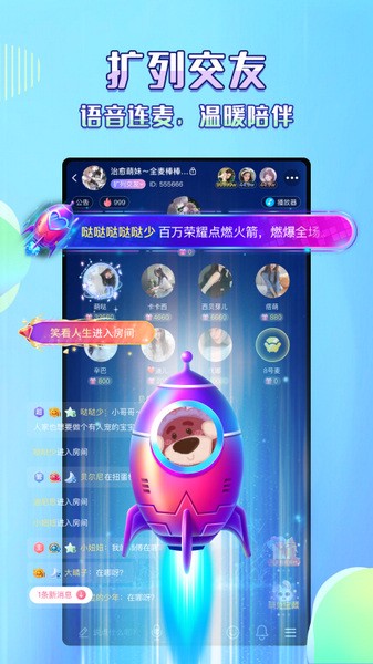 大家可以在线加入到直播派对中,与更多人一起互动聊天进行交友
