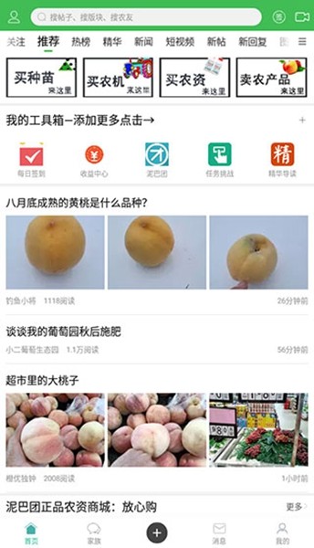 农人之家软件是一款专门为广大务农人员准备的一款农业交流社区,用户可以在上面找到许多专业人士的攻略帖,还能在上面发布自己的问题与相关人士共同探讨。农人之家软件为广大农人搭建了一个全自助互动平台,让用户交流不再困难,所谓高手在民间,用户可以在软件中找到任何自己当前种植问题的解决办法,还可以在平台中出售自己种出的果实,解决种植后的滞留问题。