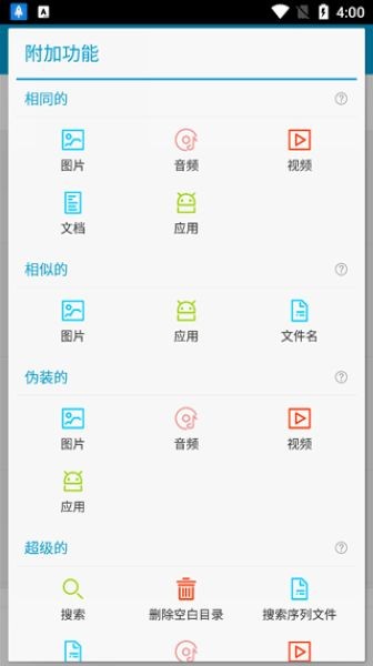 1、支持一款快速搜索安卓设备当中的重复文件。