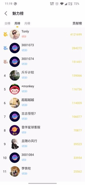 6、魅力榜单实时更新,用户可随时在线查看,了解网友的贡献榜;