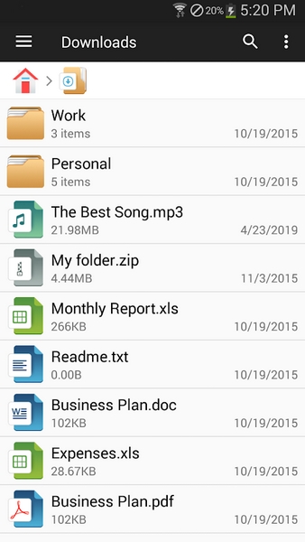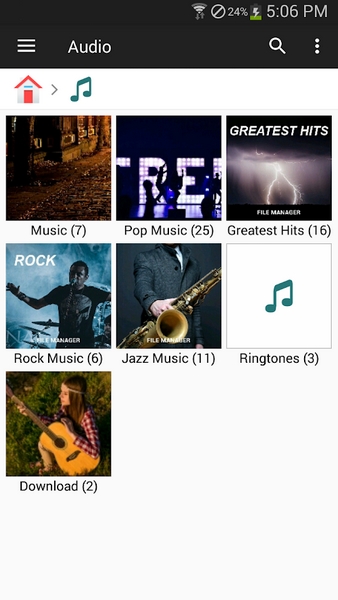 - 按类别轻松浏览文件:文档和数据,图像,视频,音乐,应用程序,下载和收藏夹。