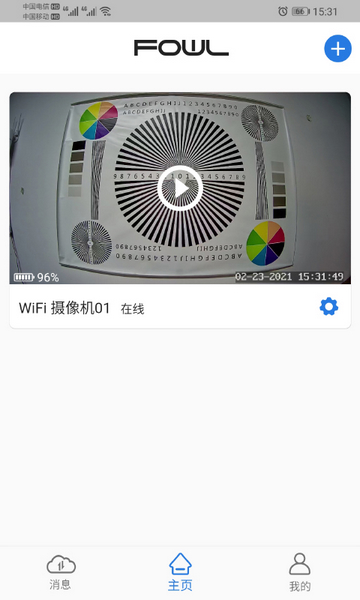 1、打开FOWL摄像头app,在首页中点击添加设备