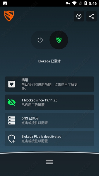 Blokada是一款非常强大的广告拦截软件,用户可以通过该工具来将手机上各处的广告进行拦截,从而减少了手机上的重要信息泄露的风险,同时也降低了流量以及性能的浪费。软件的功能也是非常灵活的,支持多项设定,且操作简单,可以随时进行修改。此外它还不需要root即可使用,且该最新破解版中已经解锁了高级版的功能。