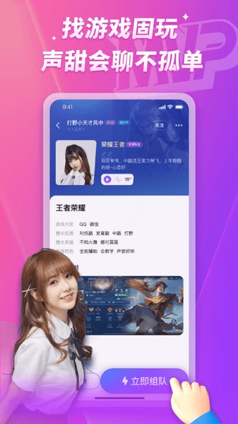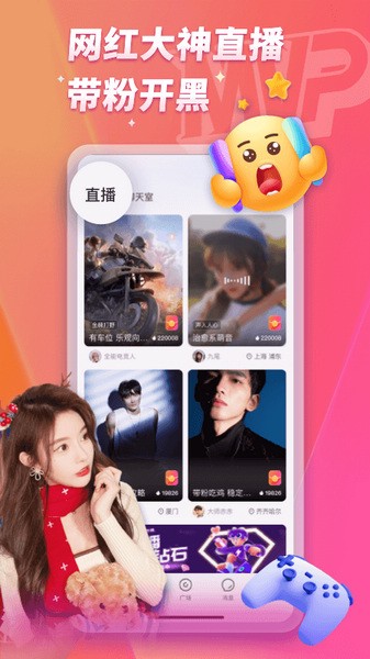 除了游戏功能,这个app还是个不错的交友平台。可以在这里认识志同道合的朋友,一起组队开黑,或者参加语音派对,和有趣的陌生人聊天互动。特别是有网红大神入驻,感觉氛围会更活跃。