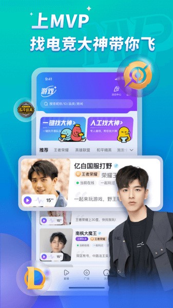众多游戏电竞大神,覆盖众多热门游戏(英雄联盟LOL、英雄联盟手游、王者荣耀、和平精英、永劫无间、PC版吃鸡等各类主流游戏),和默契队友一起上分,开黑不用等。