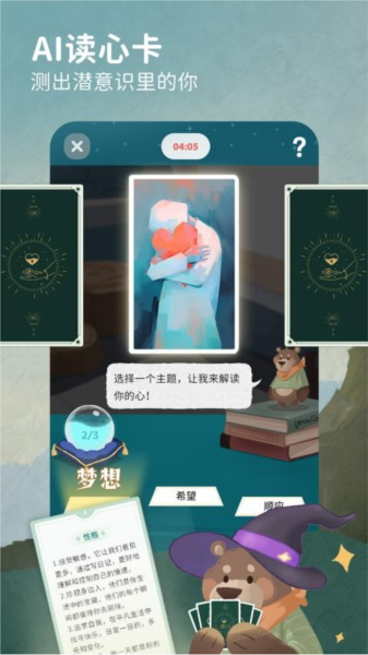 只需要抽卡简单回答几个问题,小动物们会帮你解读出性格和情绪状态。